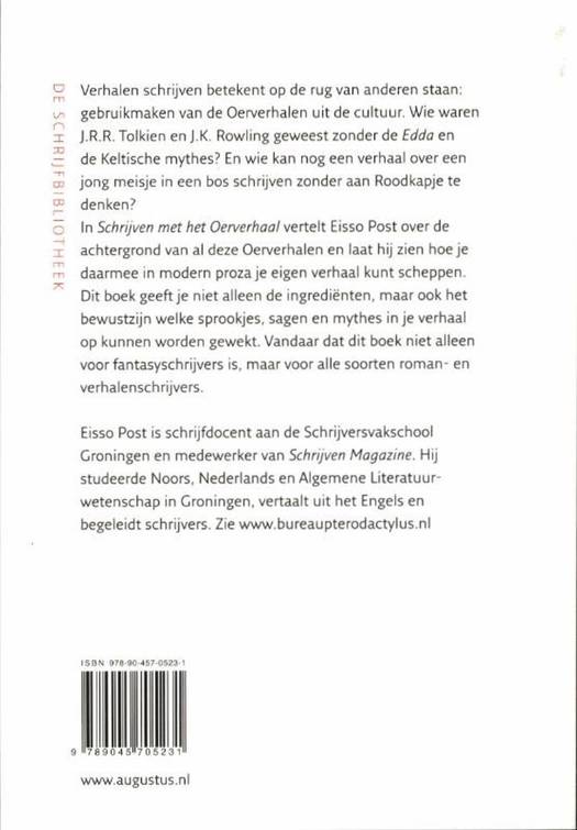 Verhalen schrijven betekent op de rug van anderen staan: gebruik maken van de oerverhalen uit de cultuur. Wie waren J.R.R. Tolkien en J.K. Rowling geweest zonder de Edda en de Keltische mythes? En wie kan nog een verhaal over een jong meisje in een bos schrijven zonder aan Roodkapje te denken? In Schrijven met het oerverhaal vertelt Eisso Post de achtergrond van al deze oerverhalen en laat hij zien hoe je daarmee in modern proza je eigen verhaal kunt scheppen. Dit boek geeft je niet alleen de ingrediënten, maar ook het bewustzijn welke sprookjes, sagen en mythes in je verhaal op worden gewekt. Vandaar dat dit boek niet alleen voor Fantasyschrijvers is, maar voor alle soorten roman- en verhalenschrijvers.