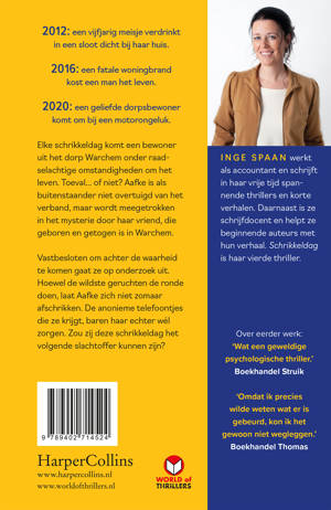 Schrikkeldag is een spannende psychologische thriller van Inge Spaan. Een aanrader voor de lezers van Marion Pauw, Marieke Damen en Angelique Haak.