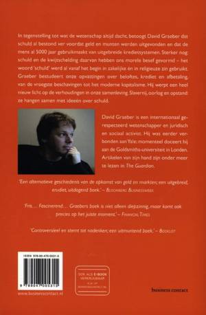 In tegenstelling tot wat de wetenschap altijd dacht, betoogt David Graeber dat schuld al bestond ver voordat geld en munten werden uitgevonden en dat de mens al 5000 jaar gebruikmaakt van uitgebreide kredietsystemen. Sterker nog: schuld en de kwijtschelding daarvan hebben ons morele besef gevormd - het woord 'schuld' werd al vanaf het begin in zakelijke én in religieuze zin gebruikt. Slavernij, geweld, oorlogen en opstanden: ze hangen samen met ideeën over schuld.