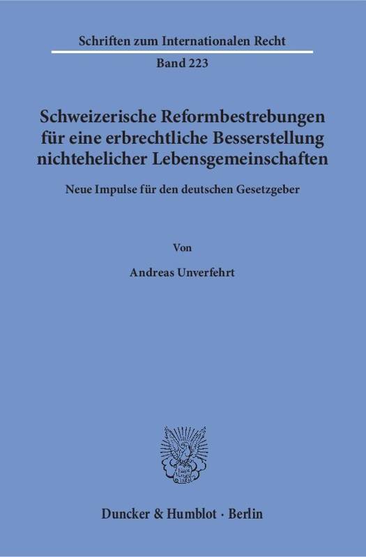 Nichtehelichen Lebensgemeinschaften wird bislang weder in Deutschland noch in der Schweiz eine gesetzliche oder gar pflichtteilsgeschutzte Erbenstellung zugestanden. Der schweizerische Gesetzgeber hat jedoch erkannt, dass nichteheliche Lebensgemeinschaften mittlerweile zur Lebensrealitat gehoren. Vor dem Hintergrund der in der Schweiz stattfindenden Reformvorstoae zeigt die Arbeit Losungsmoglichkeiten fur die Institutionalisierung eines Erbrechts nichtehelicher Lebensgemeinschaften auf. Dabei wurden zunachst die rechtlichen Grundlagen der jeweiligen Erbrechtsordnungen dargestellt sowie die in anderen Rechtsordnungen bereits vorhandenen Kodifikationen zur nichtehelichen Lebensgemeinschaft im Einzelnen untersucht. Im Anschluss daran konnte ein Reformvorschlag erarbeitet werden, der sich an den tatsachlichen Lebensverhaltnissen nichtehelicher Lebenspartner orientiert. Am Ende der Untersuchung steht schliealich ein Regelungsmodell, welches fur den nichtehelichen Lebenspartner eine gesetzliche Erbenstellung analog zum Ehegattenerbrecht sowie eine Flexibilisierung des Pflichtteilsrechts vorsieht.