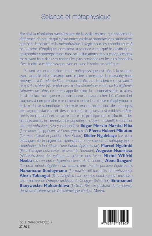 Par-delà la résolution synthétisante de la vieille énigme qui concerne la différence de nature qui existe entre les deux branches des rationalités que sont la science et la métaphysique, il s'agit dans ce livre d'expliquer comment la science a marqué le destin de la philosophie contemporaine, dans ses bifurcations et ses renoncements, mais avant tout dans ses racines les plus profondes et les plus fécondes, c'est-à-dire la métaphysique avec ou sans histoire scientifique.
