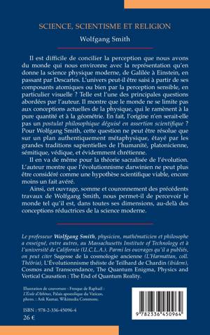 Il est difficile de concilier la perception que nous avons du monde qui nous environne avec la représentation qu’en donne la science physique moderne, de Galilée à Einstein, en passant par Descartes. L’univers peut-il être saisi à partir de ses composants atomiques ou bien par la perception sensible, en particulier visuelle ? Telle est l’une des principales questions abordées par l’auteur. Il montre que le monde ne se limite pas aux conceptions actuelles de la physique, qui le ramènent à la pure quantité et à la géométrie. En fait, l’origine n’en serait-elle pas un postulat philosophique déguisé en assertion scientifique ? Pour Wolfgang Smith, cette question ne peut être résolue que sur un plan authentiquement métaphysique, étayé par les grandes traditions sapientielles de l’humanité, platonicienne, sémitique, védique, et évidemment chrétienne. Il en va de même pour la théorie sacralisée de l’évolution. L’auteur montre que l’évolutionnisme darwinien ne peut plus être considéré comme une hypothèse scientifique viable, encore moins un fait avéré. Ainsi, cet ouvrage, somme et couronnement des précédents travaux de Wolfgang Smith, nous permet-il de percevoir le monde tel qu’il est, dans toutes ses dimensions, au-delà des conceptions réductrices de la science moderne.