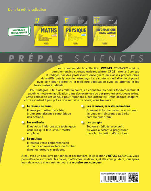 Avec un seul livre par année et par matière, la collection PRÉPAS SCIENCES vous guidera, jour après jour, dans votre cheminement vers la réussite aux concours.