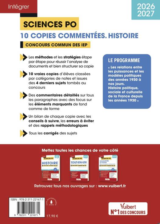 C'est ce que propose cet ouvrage à travers 10 vraies copies commentées et classées par catégories de notes sur les 4 derniers sujets tombés au concours.