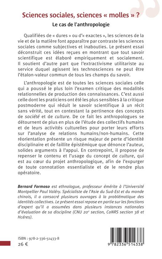 Qualifiées de dures ou d' exactes, les sciences de la vie et de la matière font apparaître par contraste les sciences sociales comme subjectives et inabouties. Le présent essai déconstruit ces idées reçues en montrant que tout savoir scientifique est élaboré empiriquement et socialement. Il soutient d'autre part que l'extractivisme utilitariste au service duquel agissent les technosciences ne peut être l'étalon-valeur commun de tous les champs du savoir. L'anthropologie est de toutes les sciences sociales celle qui a poussé le plus loin l'examen critique des modalités relationnelles de production des connaissances. C'est aussi celle dont les praticiens ont été les plus sensibles à la critique postmoderne qui réduit le savoir scientifique à un récit sans vérité, tout en contestant la pertinence des concepts de société et de culture. De ce fait les anthropologues se détournent de plus en plus de l'étude des collectifs humains et de leurs activités culturelles pour porter leurs efforts sur l'analyse de relations humains/non-humains. Cette réorientation présente un risque majeur de perte d'identité disciplinaire et de faillite épistémique que dénonce l'auteur, solides arguments à l'appui. En contrepoint, il propose de repenser le contenu et l'usage du concept de culture, qui est au coeur du projet anthropologique, afin de l'expurger de toute connotation essentialiste et de le rendre plus opératoire.
