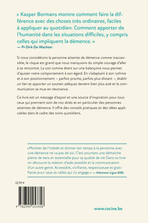 Ce livre est un message d'espoir et une source d'inspiration pour tous ceux qui prennent soin de nos aînés et en particulier des personnes atteintes de démence. Il offre des conseils pratiques et des idées applicables dans le cadre des soins quotidiens.