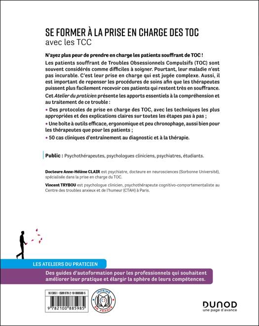 Beaucoup de thérapeutes, formés ou non, rencontrent des difficultés pour prendre en charge les patients souffrant de TOC, qui représentent plus de 3% de la population. C'est pour eux que cet ouvrage a été conçu. En effet, il vise essentiellement la pratique et une prise en main directe, en présentant de nombreuses fiches directement utilisables et de multiples exemples.
