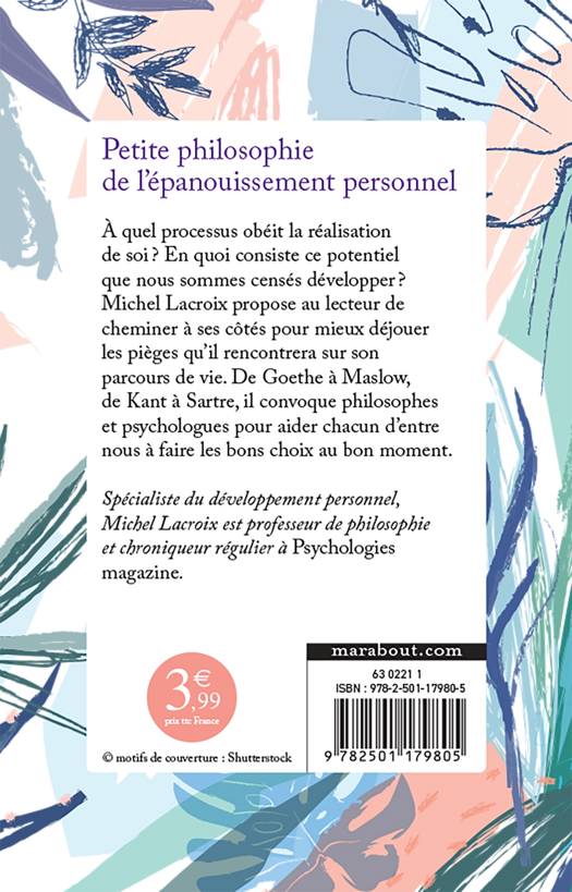 À quel processus obéit la réalisation de soi ? En quoi consiste ce potentiel que nous sommes censés développer ? Michel Lacroix propose au lecteur de cheminerà ses côtés pour mieux déjouer les pièges qu’il rencontrera sur son parcours de vie. De Goethe à Maslow, de Kant à Sartre, il convoque philosophes et psychologues pour aider chacun d’entre nous à faire les bons choix au bon moment.