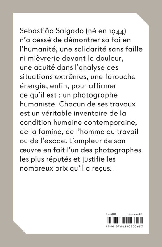 Sebastião Salgado n'a cessé de montrer sa foi en l'homme, une solidarité sans faille ni mièvrerie devant la douleur, une compétence dans l'analyse des situations extrêmes, une farouche énergie, enfin, pour affirmer ce qu'il est, un photographe humaniste. L'ampleur de chacun de ses travaux, véritables inventaires de la condition humaine contemporaine, de la famine, de l'homme au travail ou de l'exode, suffit à faire sa réputation et justifie tous les prix qu'il a reçus.