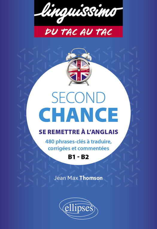 Que vous soyez étudiant ou bien déjà engagé dans la vie active, Second Chance vous propose une méthode simple et efficace pour rafraîchir vos souvenirs et pallier les lacunes grâce à 480 phrases à traduire en anglais :
