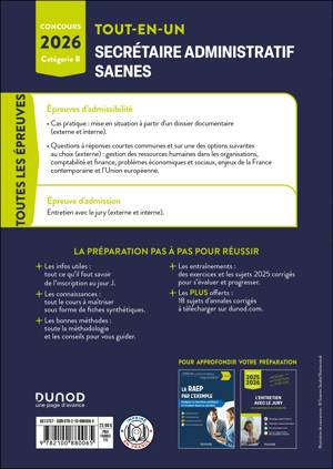Cet ouvrage prépare les candidats des concours interne ou externe de Secrétaire administratif (SA) et de Secrétaire administratif de l'Éducation nationale (SAENES) de catégorie B.