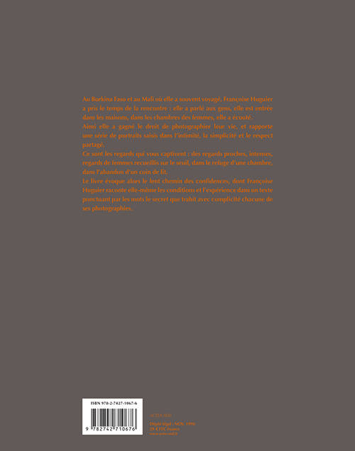 Au Burkina Faso et au Mali où elle a souvent travaillé, Françoise Huguier a pris le temps de la rencontre : elle a parlé aux gens, elle est entrée dans les maisons, dans les chambres des femmes, elle a écouté. Elle a ainsi gagné le droit de photographier leur vie, et rapporte une série de portraits saisis dans l'intimité, la simplicité et le respect partagé.