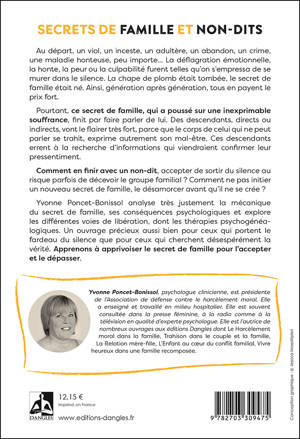Au départ, un viol, un inceste, un adultère, un abandon, un crime, une maladie honteuse, peu importe… La déflagration émotionnelle, la honte, la peur ou la culpabilité furent telles qu’on s’empressa de se murer dans le silence. La chape de plomb était tombée, le secret de famille était né. Ainsi, génération après génération, tous en payent le prix fort. Pourtant, ce secret de famille, qui a poussé sur une inexprimable souffrance, finit par faire parler de lui. Des descendants, directs ou indirects, vont le flairer très fort, parce que le corps de celui qui ne peut parler se trahit, exprime autrement son mal-être. Ces descendants errent à la recherche d’informations qui viendraient confirmer leur pressentiment. Comment en finir avec un non-dit, accepter de sortir du silence au risque parfois de décevoir le groupe familial ? Comment ne pas initier un nouveau secret de famille, le désamorcer avant qu’il ne se crée ? Yvonne Poncet-Bonissol analyse très justement la mécanique du secret de famille, ses conséquences psychologiques et explore les différentes voies de libération, dont les thérapies psychogénéalogiques. Un ouvrage précieux aussi bien pour ceux qui portent le fardeau du silence que pour ceux qui cherchent désespérément la vérité. Apprenons à apprivoiser le secret de famille pour l’accepter et le dépasser.