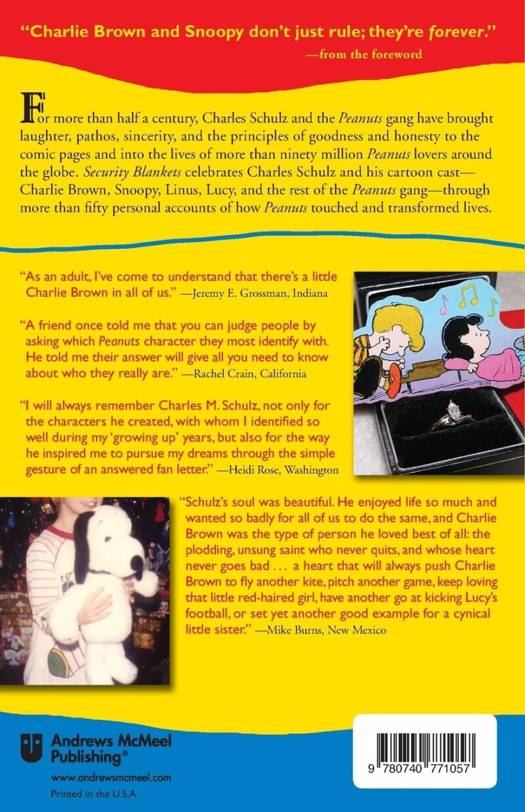 Charles M. Schulz and his beloved comic strip, Peanuts, have changed the world. In Security Blankets, Fraser and Bang present a heartwarming collection of 51 touching true stories to show the connection people have with the adored cartoon. Stories, photos from the contributors, and Peanuts artwork make this work extra special. The connections are so strong they've even had the power to change people's lives. Take, for example, the Vietnam POW; whose first piece of correspondence while in captivity was a Snoopy card that included a picture of his wife and children. Or the 5-year-old boy from Boston who demanded that his stuffed Snoopy accompany him to the hospital for a high-risk surgery. Connections such as these show how Peanuts has become a security blanket for thousands. This is chicken soup for the Peanuts lover's soul. Excerpt from the book: "But what made this drawing different was the unique "countdown calendar" that my father had drawn on Snoopy's belly. Each square on the calendar, which my sisters and I would cross out, meant that our dad was one day closer to coming home. Every time a square was marked off that drawing, Snoopy brought a bit of happiness and security to a war-weary and scared ten-year-old girl who desperately missed her Daddy. Did Snoopy help bring my father safely home from the Vietnam War? Maybe, maybe not. But to this day, whenever I see Snoopy--especially when he's performing his happy dance--my heart is grateful and filled with loving memories of my Dad.