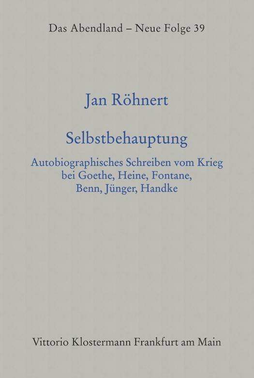 Autobiographische Texte vom Krieg sind bislang oft als "Memoiren" abgestempelt oder lediglich von Historikern als "Quellen" herangezogen worden. Jan Röhnerts umfangreiche Studie zeigt an kanonischen Autoren und Texten von Johann Wolfgang Goethe über Heinrich Heine, Theodor Fontane, Gottfried Benn und Ernst Jünger bis zu Peter Handke, dass die moderne Gattung der Autobiographie aufs engste mit der Darstellung des Krieges verbunden ist. Unter dem von Hans Blumenberg entlehnten Begriff der Selbstbehauptung werden literarische Strategien der Objektivierung, Ästhetisierung und Anekdotisierung zusammengefasst, die seit der 1822 veröffentlichten "Campagne in Frankreich 1792" Goethes unter wechselnden historischen und biographischen Vorzeichen in unterschiedlichen poetologischen Konstellationen wiederkehren - in Heines "Buch Le Grand" ebenso wie in Fontanes "Kriegsgefangen", Benns "Doppelleben", Jüngers "Strahlungen" und nicht zuletzt Handkes "Winterliche Reise". Auf diese Weise entsteht das fesselnde Panorama einer in dichten Lektüren nachgewiesenen Verwandtschaft von Autobiographen, die sich am Krieg abarbeiten und dabei letztlich ein Ziel verfolgen: die Rettung des Ich.