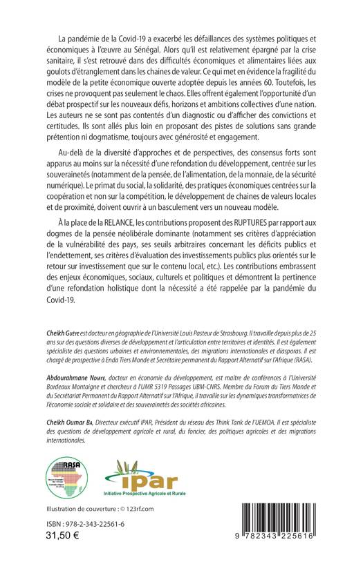 La pandémie de la Covid-19 a exacerbé les défaillances des systèmes politiques et économiques à l’oeuvre au Sénégal. Alors qu’il est relativement épargné par la crise sanitaire, il s’est retrouvé dans des difficultés économiques et alimentaires liées aux goulots d’étranglement dans les chaines de valeur. Ce qui met en évidence la fragilité du modèle de la petite économique ouverte adoptée depuis les années 60. Toutefois, les crises ne provoquent pas seulement le chaos mais offrent également l’opportunité d’un débat prospectif sur les nouveaux défis, horizons et ambitions collectives d’une nation. Les auteurs ne se sont pas contentés d’un diagnostic, ils sont allés plus loin en proposant des pistes de solutions.