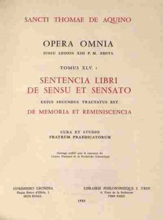 L'édition donne le texte critique des commentaires de saint Thomas sur les traités psychologiques d'Aristote ainsi que celui des traductions latines de ce dernier qui sont des recensions partielles des révisions de Guillaume de Moerbeke. L'édition s'efforce de situer l'oeuvre dans son contexte historique (éd. R.-A. GAUTHIER).