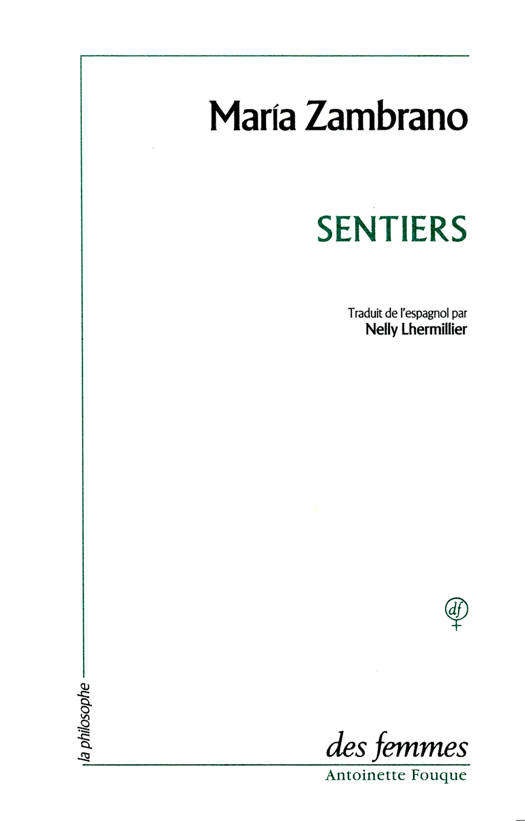 « Les faits de l'histoire, qui loin d'occulter la vie la laissent transparaître, finissent par révéler leur sens très tard, c'est-à-dire quand on n'y peut plus rien, même en rêve. » C'est sans doute pour cette raison que Maria Zambrano choisit, en 1987, de réunir ces textes de différentes époques de sa vie, et de leur donner pour titre Sentiers, chemins philosophiques, historiques ou poétiques, qui tous représentent un moment de son action et un aspect de sa foi — foi en la puissance de l'esprit humain et de la culture sur les forces de mort et de violence, foi lumineuse qui a pour représentants privilégiés les deux figures de saint Jean de la Croix et d'Antigone. Le fascisme révéla à Maria Zambrano que le monde n'est pas « docile », qu'il est composé non « de choses » mais « d'événements ». Et que la tâche du penseur est d'en chercher la raison.