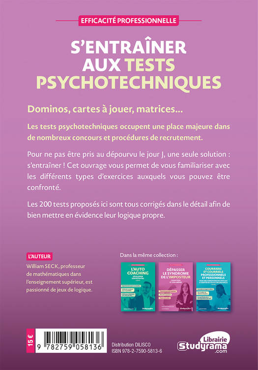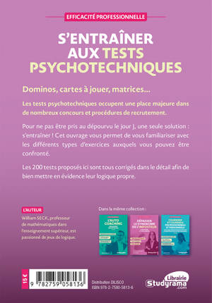 Dominos, cartes à jouer, matrices, suites logiques… Les tests psychotechniques occupent une place majeure dans de nombreux concours et procédures de recrutement. Pour ne pas être pris au dépourvu le jour J, une seule solution : s’entraîner ! Cet ouvrage permet de se familiariser avec les différents types d’exercices et d’affronter ce type de tests sans stress ni angoisse.