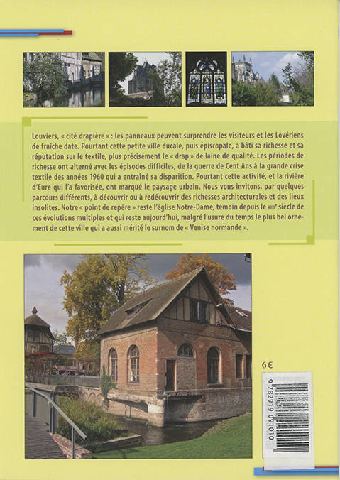 Louviers, « cité drapière » : les panneaux peuvent surprendre les visiteurs et les Lovériens de fraîche date. Pourtant cette petite ville ducale, puis épiscopale, a bâti sa richesse et sa réputation sur le textile, plus précisément le « drap » de laine de qualité. Les périodes de richesse ont alterné avec les épisodes difficiles, de la guerre de Cent Ans à la grande crise textile des années 1960 qui a entraîné sa disparition. Pourtant cette activité, et la rivière d’Eure qui l’a favorisée, ont marqué le paysage urbain. Nous vous invitons, par quelques parcours différents, à découvrir ou à redécouvrir des richesses architecturales et des lieux insolites. Notre « point de repère » reste l’église Notre-Dame, témoin depuis le XIIIe siècle de ces évolutions multiples et qui reste aujourd’hui, malgré l’usure du temps le plus bel ornement de cette ville qui a aussi mérité le surnom de « Venise normande ».
