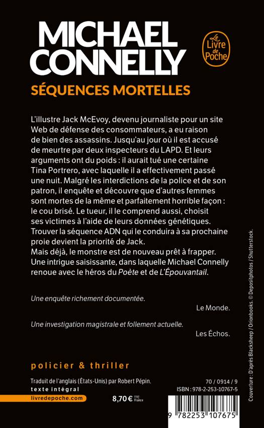 L’illustre Jack McEvoy, devenu journaliste pour un site web de défense des consommateurs, a eu raison de bien des assassins. Jusqu'au jour où il est accusé de meurtre par deux inspecteurs du LAPD. Et leurs arguments ont du poids : il aurait tué une certaine Tina Portrero, avec laquelle il a effectivement passé une nuit. Malgré les interdictions de la police et de son propre patron, il enquête et découvre que d'autres femmes sont mortes de la même et parfaitement horrible façon : le cou brisé. Le tueur, il le comprend aussi, choisit ses victimes à l'aide de leurs données génétiques. Trouver la séquence ADN qui le conduira à sa prochaine proie devient la priorité de Jack. Mais déjà, le monstre est de nouveau prêt à frapper.