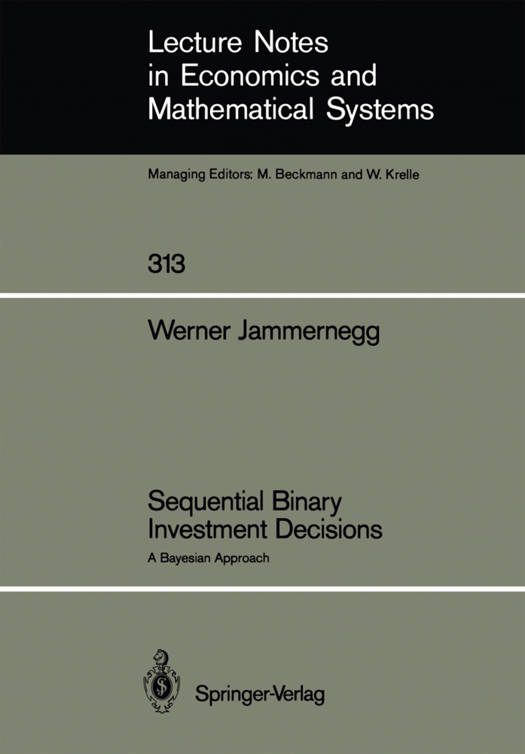 This book describes some models from the theory of investment which are mainly characterized by three features. Firstly, the decision-maker acts in a dynamic environment. Secondly, the distributions of the random variables are only incompletely known at the beginning of the planning process. This is termed as decision-making under conditions of uncer- tainty. Thirdly, in large parts of the work we restrict the analysis to binary decision models. In a binary model, the decision-maker must choose one of two actions. For example, one decision means to undertake the invest- -ment project in a planning period, whereas the other decision prescribes to postpone the project for at least one more period. The analysis of dynamic decision models under conditions of uncertainty is not a very common approach in economics. In this framework the op- timal decisions are only obtained by the extensive use of methods from operations research and from statistics. It is the intention to narrow some of the existing gaps in the fields of investment and portfolio analysis in this respect. This is done by combining techniques that have been devel- oped in investment theory and portfolio selection, in stochastic dynamic programming, and in Bayesian statistics. The latter field indicates the use of Bayes' theorem for the revision of the probability distributions of the random variables over time.