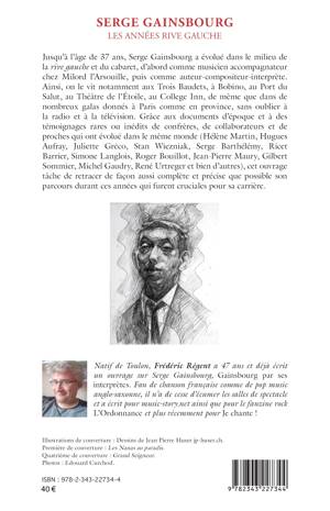 Jusqu’à l’âge de 37 ans, Serge Gainsbourg a évolué dans le milieu de la rive gauche et du cabaret, d’abord comme musicien accompagnateur chez Milord l’Arsouille, puis comme auteur-compositeur-interprète. Ainsi, on le vit notamment aux Trois Baudets, à Bobino, au Port du Salut, au Théâtre de l’Étoile, au College Inn, de même que dans de nombreux galas donnés à Paris comme en province, sans oublier à la radio et à la télévision. Grâce aux documents d’époque et à des témoignages rares ou inédits de confrères, de collaborateurs et de proches qui ont évolué dans le même monde, cet ouvrage tâche de retracer de façon aussi complète et précise que possible son parcoursdurant ces années qui furent cruciales pour sa carrière.