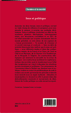 Ce numéro interroge et confronte - bien au-delà du postulat bien institué que le sexe est politique - dans des configurations variées, de la France à la Chine, de l'Irak au Chili et au Mexique, de la Guyane à la Guadeloupe, de la Mongolie à l'Algérie, les constructions idéologiques qui ramènent la sexualité sur la scène du politique : ces constructions mobilisent le capital symbolique des sociétés mais le transforment sous l'effet des imaginaires qui visent à dépasser les situations socioéconomiques et politiques...