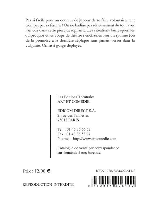 Pas si facile pour un coureur de jupons de se faire volontairement tromper par sa femme! On ne badine pas sérieusement du tout avec l'amour dans cette pièce désopilante. Les situations burlesques, les quiproq uos e t les coups de théâtre s'enchaînent sur un ryt hme fou d e la pre mière à la derni ère ré pli qu e san s j am ais verser dans la vulgarité. On rit à gorge déployée.