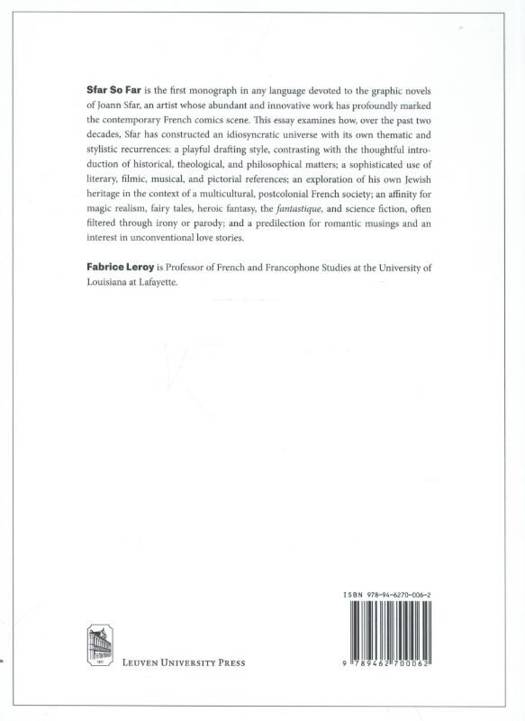 Sfar So Far is the first monograph in any language devoted to the graphic novels of Joann Sfar, an artist whose abundant and innovative work has profoundly marked the contemporary French comics scene. This book examines how, over the past two decades, Sfar has constructed an idiosyncratic universe with its own thematic and stylistic recurrences: a playful drafting style, contrasting with the thoughtful introduction of historical, theological, and philosophical matters; a sophisticated use of literary, filmic, musical, and pictorial references; an exploration of his own Jewish heritage in the context of a multicultural, postcolonial French society; an affinity for magic realism, fairy tales, heroic fantasy, the fantastique, and science fiction, often filtered through irony or parody; and a predilection for romantic musings and an interest in unconventional love stories.
