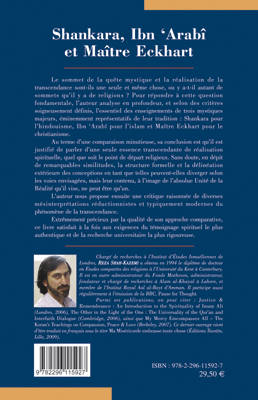 Le sommet de la quête mystique et la réalisation de la transcendance sont-ils une seule et même chose, ou y a-t-il autant de sommets qu'il y a de religions ? L'auteur analyse l'essentiel des enseignements de trois mystiques majeurs, représentatifs de leur tradition : Shankara pour l'hindouisme, Ibn'Arabî pour l'islam et Maître Eckart pour le christianisme. Sa conclusion est qu'il est justifié de parler d'une seule essence transcendante de réalisation spirituelle, quel que soit le point de départ religieux.