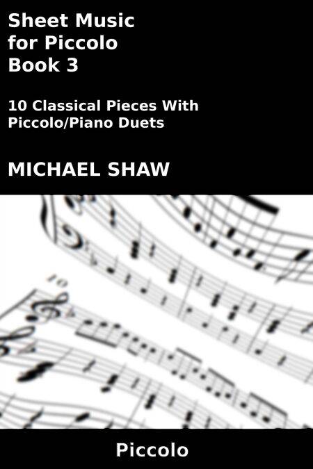 This is a Piccolo sheet music book with 10 classical sheet music pieces. Each piece has two easy arrangements, one for solo Piccolo, the other for Piccolo and Piano when playing duets. The piano parts can be played on piano or electronic keyboard, they are very easy to play and are arranged to accompany the Piccolo.