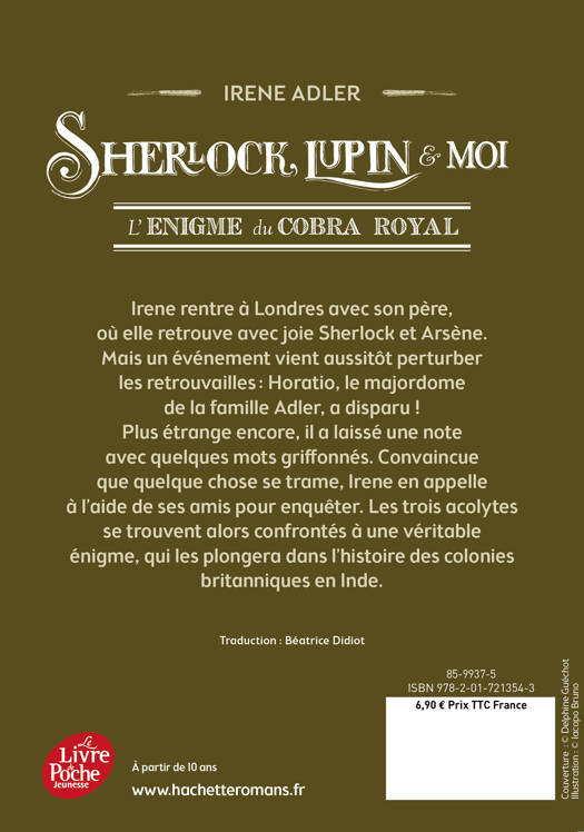 Irène rentre à Londres avec son père, où elle retrouve avec joie Sherlock et Arsène. Mais un événement vient aussitôt perturber les retrouvailles : Horatio, le majordome de la famille Adler, a disparu ! Plus étrange encore, il a laissé une note avec quelques mots griffonnés. Convaincue que quelque chose se trame et que la note peut être un indice, Irène en appelle à l’aide de ses amis pour enquêter. Les trois amis se trouvent alors confrontés à une véritable énigme, qui les plongera dans l’histoire des colonies britanniques en Inde.