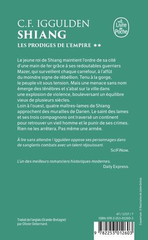 Le jeune roi de Shiang maintient l’ordre de sa cité d’une main de fer grâce à ses redoutables guerriers Mazer qui surveillent chaque carrefour, à l’affût du moindre signe de rébellion. Tenu à la gorge, le peuple vit sous tension. Mais une menace sans nom émerge des ténèbres et s’abat sur la ville dans une explosion de violence, bouleversant un équilibre vieux de plusieurs siècles. Loin à l’ouest, quatre maîtres-lames de Shiang approchent des murailles de Darien. Le saint des lames et ses trois compagnons ont traversé un continent pour retrouver un vieil homme et le punir de ses crimes. Rien ne les arrêtera. Pas même une armée.