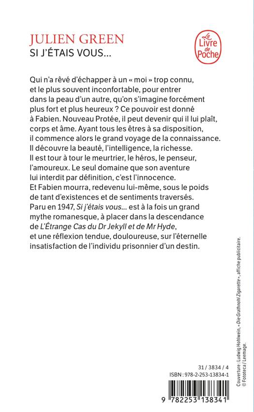 Paru en 1947, Si j'étais vous... est à la fois un grand mythe romanesque à placer dans la descendance de Dr Jekill et Mr Hyde, et une réflexion tendue, douloureuse, sur l'éternelle insatisfaction de l'individu prisonnier d'un destin.