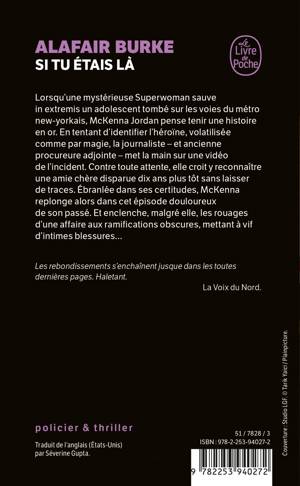 Lorsqu’une mystérieuse superwoman sauve in extremis un adolescent tombé sur les voies du métro new-yorkais, McKenna Jordan pense tenir une histoire en or. En tentant d’identifier l’héroïne, volatilisée comme par magie, la journaliste – et ancienne procureure adjointe – met la main sur une vidéo de l’incident. Contre toute attente, elle croit y reconnaître une amie chère disparue dix ans plus tôt sans laisser de traces. Ébranlée dans ses certitudes, McKenna replonge alors dans cet épisode douloureux de son passé. Et enclenche, malgré elle, les rouages d’une affaire aux ramifications obscures, mettant à vif d’intimes blessures…