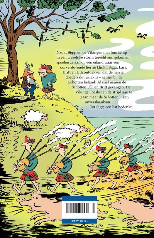 Nadat Siggi de Vikingen verlost heeft van de vloek kunnen ze eindelijk van het eiland wegvaren. Maar als ze in een vreselijke storm terechtkomen, spoelen de Vikingen aan op een eiland waar een oorverdovende herrie klinkt. Siggi, Lars, Britt en Ulli ontdekken dat de herrie doedelzakmuziek is - ze zijn bij de Schotten beland! Al snel nemen de Schotten Ulli en Britt gevangen. De Vikingen besluiten de strijd aan te gaan maar de Schotten lijken onverslaanbaar. Tot Siggi een list bedenkt...