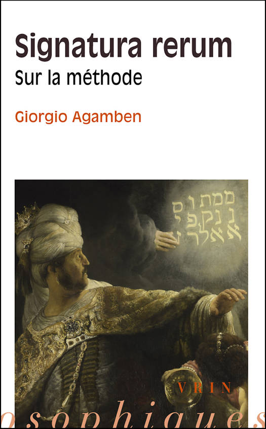 La question de la methode est ici abordee a partir d'une reflexion sur trois concepts: le paradigme, la signature, l'archeologie. L'analyse du paradigme permet de dessiner les lignes essentielles d'un chapitre qui fait defaut dans l'histoire de la logique occidentale - la theorie de l'exemple et de l'analogie. Sur les traces des traites de l'age baroque et de la Renaissance de signatura rerum, le deuxieme volet definit la signature comme signe dans le signe , qui joue un role decisif dans l'interpretation des signes, de la theorie medievale des sacrements a Benveniste, de la doctrine des transcendantaux a Warburg et a Freud. Le troisieme, enfin, poursuit les analyses de Foucault sur la relation entre archeologie et histoire et pose un concept d'origine qui ne reste pas isole dans le passe, mais qui, comme les mots indo-europeens en grammaire comparee ou l'enfant en psychanalyse, ne cesse d'agir dans le present pour le rendre intelligible. L'entrelacs de ces trois noeuds problematiques ouvre l'espace d'un court traite sur la methode, question premiere et ultime pour tout travail en philosophie et en sciences humaines.