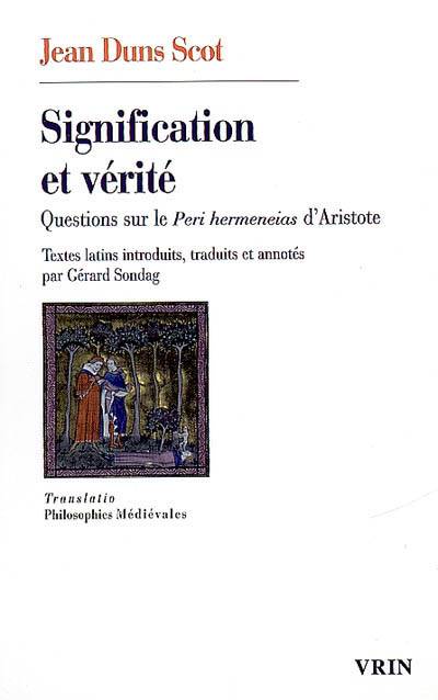 Sans doute une oeuvre de jeunesse, les Questions de Duns Scot sur le traite d'Aristote Peri hermeneias sont une investigation portant sur divers problemes de semantique, plutot qu'un commentaire sur le traite aristotelicien. Qu'il traite des noms, des verbes et des temps du verbe, de l'unite des propositions, des relations entre les choses, le langage et la pensee, le motif centrale de l'ouvrage est la question des rapports entre signification et verite. Chaque question est traitee selon la methode sic et contra, avant que l'auteur n'arrete la solution qui lui est propre. Comme ces solutions seront reprises sans changement dans l'oeuvre ulterieure, les Questions sur le Peri hermeneias peuvent etre regardees comme une introduction a la philosophie de Duns Scot, bien que sa metaphysique n'y soit pas encore parvenue a maturite.
