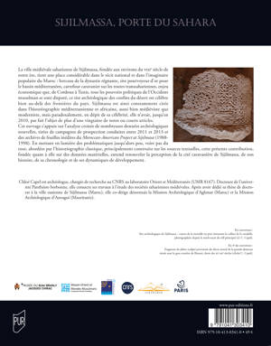 La ville médiévale saharienne de Sijilmassa, fondée aux environs du VIIIe siècle de notre ère, tient une place considérable dans le récit national et dans l’imaginaire populaire du Maroc : berceau de la dynastie régnante, site pourvoyeur d’or pour le bassin méditerranéen, carrefour caravanier sur les routes transsahariennes, enjeu économique que, de Cordoue à Tunis, tous les pouvoirs politiques de l’Occident musulman se sont disputé, ce site archéologique des confins du désert est célèbre bien au-delà des frontières du pays. Sijilmassa est ainsi constamment citée dans l’historiographie méditerranéenne et africaine, aussi bien médiéviste que moderniste, mais paradoxalement, en dépit de sa célébrité, elle n’avait, jusqu’en 2010, pas fait l’objet de plus d’une vingtaine de notes ou courts articles. Cet ouvrage s’appuie sur l’analyse croisée de nombreuses données archéologiques nouvelles, tirées de campagnes de prospection conduites entre 2011 et 2013 et des archives de fouilles inédites du Moroccan-American Project at Sijilmasa (1988-1998). En mettant en lumière des problématiques jusqu’alors peu, voire pas du tout, abordées par l’historiographie classique, principalement construite sur les sources textuelles, cette présente contribution, fondée quant à elle sur des données matérielles, entend renouveler la perception de la cité caravanière de Sijilmassa, de son histoire, de sa chronologie et de ses dynamiques de développement.