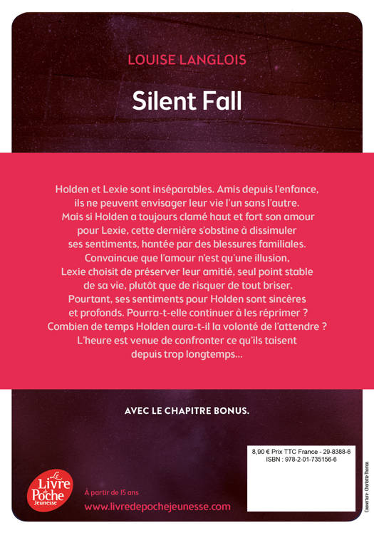 Holden et Lexie sont inséparables. Amis depuis l’enfance, ils ne peuvent envisager leur vie l’un sans l’autre. Mais si Holden a toujours clamé haut et fort son amour pour Lexie, cette dernière s’obstine à dissimuler ses sentiments, hantée par ses blessures familiales. Convaincue que l’amour n’est qu’une illusion, Lexie choisit de préserver leur amitié, seul point stable de sa vie, plutôt que de risquer de tout briser. Pourtant, ses sentiments pour Holden sont sincères et profonds. Pourra-t-elle continuer de les réprimer ? Combien de temps Holden aura-t-il la volonté de l’attendre ? L’heure est venue de confronter ce qu’ils taisent depuis trop longtemps…