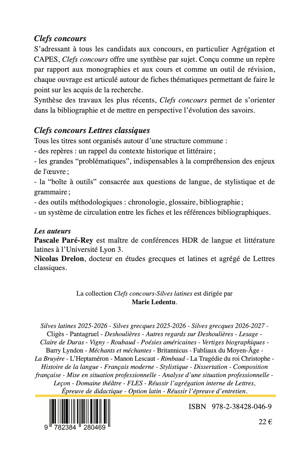 Traitant des nouveaux éléments du programme de latin des agrégations externe de Lettres classiques et de Grammaire, l’ouvrage propose tous les éléments nécessaires à la réussite du candidat. Comme tous les clefs-concours Lettres classiques, l’ouvrage est composé de deux parties consacrées à chacune des deux nouvelles œuvres au programme, elles-mêmes subdivisées en Repères, Problématiques et Boîte à outils.