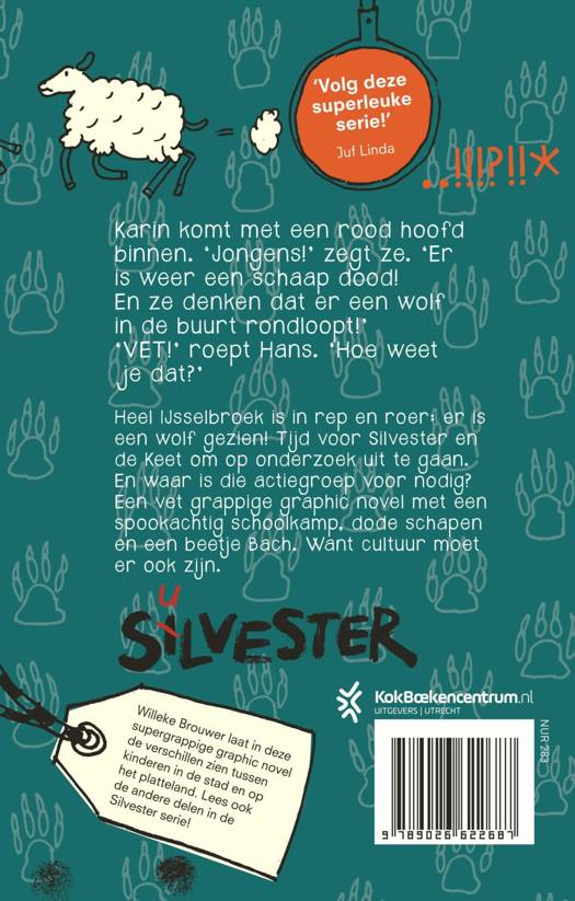 In ‘Silvester… en de verdwaalde wolf’ van Willeke Brouwer beleeft Silvester opnieuw allerlei avonturen. Dit keer loopt er een wolf in IJsselbroek rond! Het is weer een beetje rustig in IJsselbroek. Er worden geen inbraken meer gepleegd, geen vreemde ridders opgegraven en alles is weer gewoon. Hoewel… doodgebeten schapen zijn niet helemaal gewoon. Wie doet dat? Dat is een mooie uitdaging voor de Keet van IJsselbroek. Sil, Hans, Eva, Jorrit, Karin en Bente maken een plan. Silvesters vader gaat in een actiegroep, want er komt een nieuwe woonwijk in het dorp. Daar moet over gediscussieerd worden. Een hilarische graphic novel met een spannend en actueel onderwerp: een wolf!