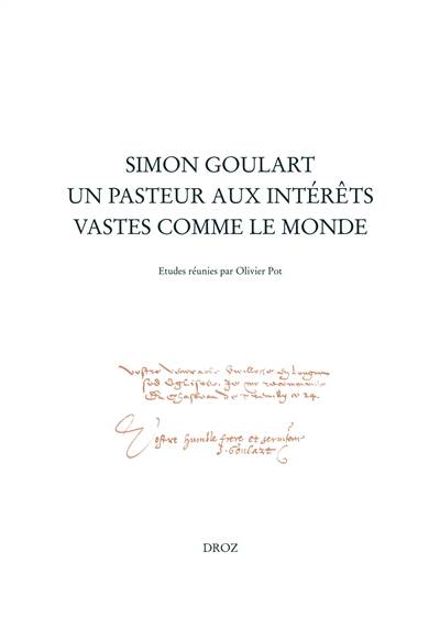 Simon Goulart (1543-1628) est un des écrivains polygraphes les plus féconds de son époque. Traducteur de Plutarque, éditeur de Montaigne, poète lyrique et satirique... il fut un pasteur entre les Réformes d'expression allemande et française. Successeur de Calvin et de Bèze à la tête de la Compagnie des pasteurs, il s'engagea dans l'action politique en tant qu'historien des guerres de Religion.