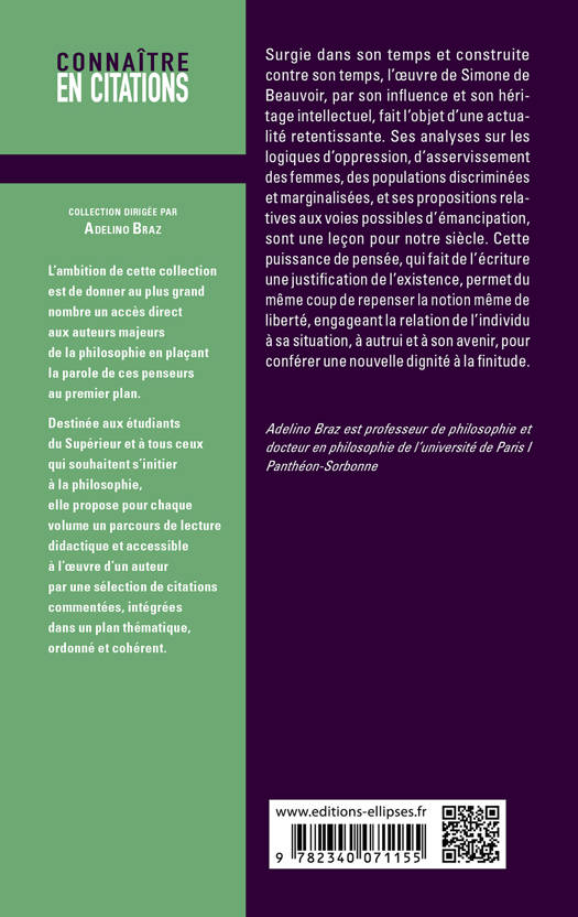 Surgie dans son temps et construite contre son temps, l’œuvre de Simone de Beauvoir, par son influence et son héritage intellectuel, fait l’objet d’une actualité retentissante. Ses analyses sur les logiques d’oppression, d’asservissement des femmes, des populations discriminées et marginalisées, et ses propositions relatives aux voies possibles d’émancipation, sont une leçon pour notre siècle. Cette puissance de pensée, qui fait de l’écriture une justification de l’existence, permet du même coup de repenser la notion même de liberté, engageant la relation de l’individu à sa situation, à autrui et à son avenir, pour conférer une nouvelle dignité à la finitude.