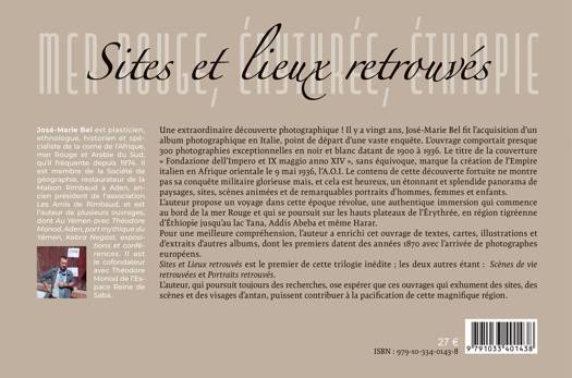 Une extraordinaire découverte photographique ! Il y a vingt ans, José-Marie Bel fit l’acquisition d’un album photographique en Italie, point de départ d’une vaste enquête. L’ouvrage comportait presque 300 photographies exceptionnelles en noir et blanc datant de 1900 à 1936. Le titre de la couverture « Fondazione dell’Impero et IX maggio anno XIV », sans équivoque, marque la création de l’Empire italien en Afrique orientale le 9 mai 1936, l’A.O.I. Le contenu de cette découverte fortuite ne montre pas sa conquête militaire glorieuse mais un étonnant et splendide panorama de paysages, sites, scènes animées et de remarquables portraits d’hommes, femmes et enfants. L’auteur propose un voyage dans cette époque révolue, une authentique immersion qui commence au bord de la mer Rouge et qui se poursuit sur les hauts plateaux de l’Érythrée, en région tigréenne de l’Éthiopie jusqu’au lac Tana, Addis Abeba et même Harar. Pour une meilleure compréhension, l’auteur a enrichi cet ouvrage de textes, cartes, illustrations et d’extraits d’autres albums datant de 1870 à 1938. Sites et Lieux retrouvés est le premier de cette trilogie inédite. Un sublime florilège d’une collection « Harcourt » des tropiques africains d’antan.