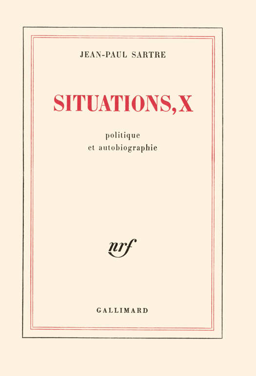 Le dixième volume des Situations contient d'abord quatre textes politiques qui traitent de quatre des questions majeures de l'après-mai 68 : les luttes des minorités nationales ("Et si Sartre avait raison ?" se demandait en 1971 Le Monde lorsque sa préface au Procès de Burgos de Gisèle Halimi posa pour la première fois avec une telle netteté le droit des ethnies minoritaires à définir leur identité contre l'État centralisateur) ; les conditions de l'émergence d'une nouvelle gauche révolutionnaire (Les maos en France) ; l'opposition de la justice populaire à la justice d'État ; la contestation radicale de la démocratie représentative (Élections, piège à cons). La seconde partie est formée de trois entretiens à caractère autobiographique. Le premier de ces entretiens porte sur L'Idiot de famille. Dans le second, Simone de Beauvoir interroge Sartre sur ses rapports avec le féminisme. Enfin, le troisième - qui occupe à lui seul la moitié du volume - est la version intégrale et largement inédite de l'"Autoportrait à soixante-dix ans" dont Le Nouvel Observateur a publié des extraits. Dans cette longue conversation avec Michel Contat, Sartre dresse un bilan provisoire de sa vie et donne ainsi une première suite à son autobiographie, Les Mots.