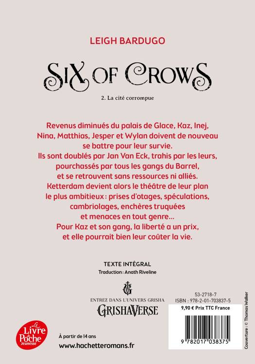 Après avoir réussi à s’enfuir du Palais des Glaces, Kaz et ses compagnons se sentent invulnérables. Un revirement de situation va cependant changer la donne d’une partie mortelle que devront jouer les jeunes prodiges du crime. Alors que les grandes puissances Grisha s’organisent pour leur mettre la main dessus, Kaz imagine un plan, entre vengeance et arnaque, qui leur assurera la gloire éternelle en cas de réussite, et provoquera la ruine de leur monde s’ils échouent.