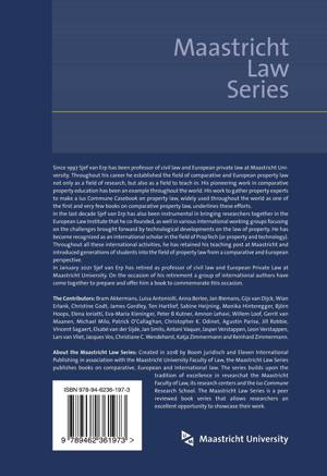 In January 2021 Sjef van Erp has retired as professor of civil law and European Private Law at Maastricht University. On the occasion of his retirement a group of international authors have come together to prepare and offer him a book to commemorate this occasion.