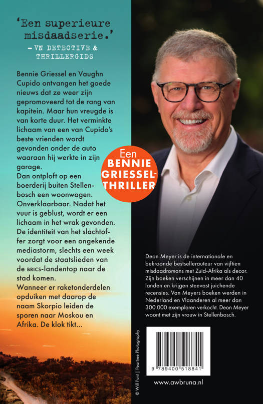 Dan ontploft op een boerderij buiten Stellenbosch een woonwagen. Onverklaarbaar. Nadat het vuur is geblust, wordt er een lichaam in het wrak gevonden. De identiteit van het slachtoffer zorgt voor een ongekende mediastorm, slechts een week voordat de staatslieden van de BRICS-top naar de stad komen. Wanneer er raketonderdelen opduiken met daarop de naam Skorpio leiden de sporen naar Moskou en Afrika. De klok tikt…